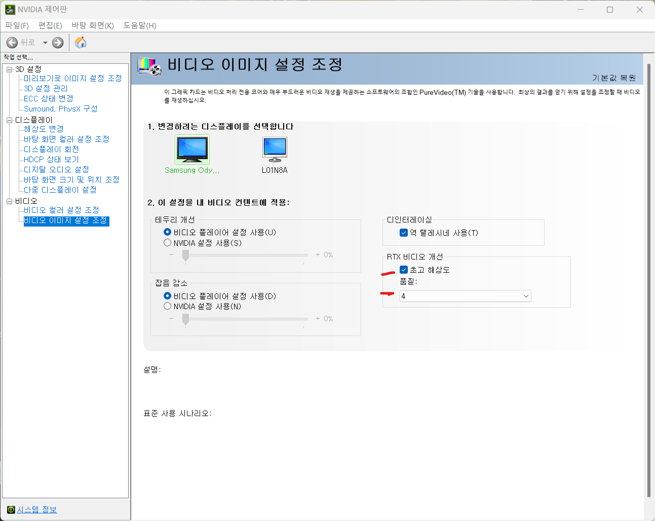 NVIDIA 제어판 -> 비디오-> 비디오 이미지 설정 조정